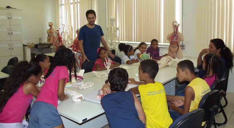 TEÓFILO OTONI- Estudantes e professores da Escola Municipal Honorinda Ferreira Cardoso participaram de uma visita às instalações da Universidade Federal dos Vales do Jequitinhonha e Mucuri (UFVJM), e consequentemente da Faculdade de Medicina do Mucuri (FAMMUC). A visita foi acompanhada por colaboradores, servidores técnicos-administrativos e membros dos projetos de extensão ‘Vida Saudável” e Parque da Ciência, da universidade, coordenados pelos professores Roberta Barbizan Petinari, Mauro Lúcio Franco e Ernani Aloysio Amaral. Na ocasião, as crianças tiveram a oportunidade de conhecer o Campus, o Laboratório de Anatomia da Faculdade de Medicina do Mucuri e o Parque da Ciência, onde puderam explorar e descobrir os enigmas por trás de atos simples do nosso cotidiano. Os estudantes ainda, assistiram ao vídeo educativo “Um plano para salvar o planeta” com o propósito de conscientização acerca da necessidade de cuidarem do meio ambiente. Dessa forma, brincando e se divertindo, as crianças puderam aprender na prática sobre higiene pessoal, órgãos do corpo humano e suas funções, noções sobre física, química e biologia, dentre outros assuntos. Segundo a professora Roberta Barbizan Petinari, a união desses três projetos de extensão, corrobora com o propósito da Faculdade de Medicina, que além da formação de excelência de médicos capacitados, busca também a expansão do conhecimento vinculada à transformação social da comunidade.