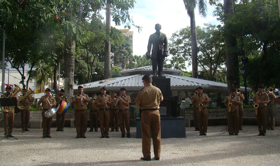 TEÓFILO OTONI – Na manhã da última quinta-feira (21), a Banda de Música da 15ª RPM esteve na praça central da cidade que leva o nome do patrono de todas as polícias do Brasil, o Alferes “Tiradentes”. Na oportunidade, foi feita execução do Hino Nacional Brasileiro, Canção da Polícia em