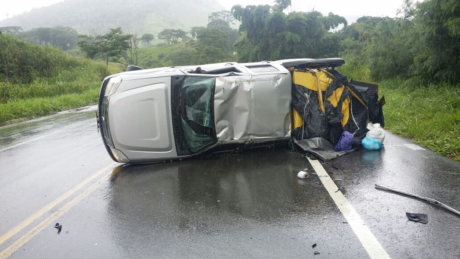 Sinistro aconteceu na BR-116. Chovia no momento do acidente. De acordo com a PRF, o condutor perdeu o controle da direção