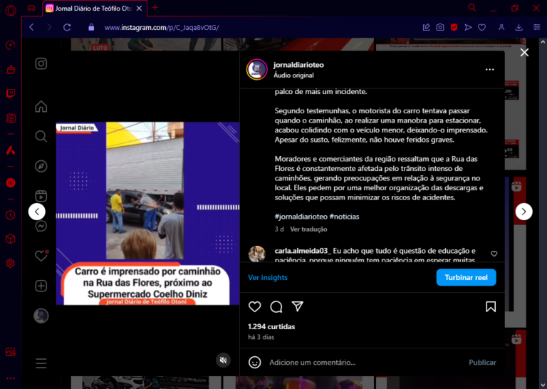 Briga por vaga de estacionamento Na noite desta quarta-feira (11), na rua Epaminondas Otoni, no Centro de Teófilo Otoni, um desentendimento entre dois homens no trânsito resultou em uma discussão acalorada. O conflito teria começado devido a uma disputa por uma vaga de estacionamento, envolvendo um motociclista e um