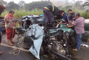 TEÓFILO OTONI – A colisão frontal entre um carro de passeio e um veículo de carga deixou uma pessoa morta e outra gravemente ferida, na madrugada deste domingo (28), na altura do quilômetro 249 da BR-116, próximo ao distrito de Mucuri, em Teófilo Otoni. O veículo VW/Golf, que tinha como destino Teófilo Otoni, e um caminhão, que seguia para o Estado de Pernambuco com uma carga de peças automotivas, colidiram por volta das 2h. Com o impacto do acidente, o veículo menor ficou completamente destruído. Um dos ocupantes do carro, de 33 anos, não resistiu aos graves ferimentos e morreu preso às ferragens. A outra vítima, Vitor Coelho Ramalho, de 28 anos, foi socorrido por equipes do Corpo de Bombeiros e Serviço de Atendimento Móvel de Urgência (SAMU) e encaminhado para o Hospital Santa Rosália. O caminhoneiro não sofreu nenhum ferimento. A Perícia Técnica da Polícia Civil foi acionada para os levantamentos iniciais. Após os trabalhos, o corpo foi removido ao Instituto Médico Legal (IML) em Teófilo Otoni. As causas do acidente serão apuradas.