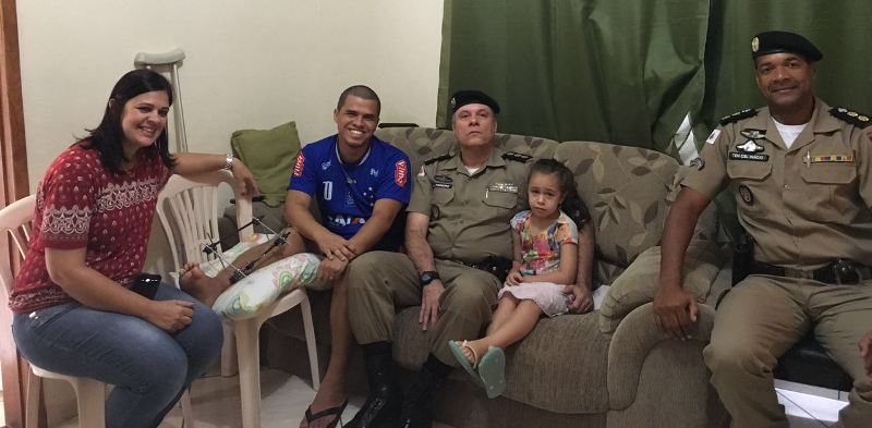 TEÓFILO OTONI – Na quarta-feira (22), o comandante da 15ª RPM, coronel Pinheiro, numa demonstração de liderança, comprometimento e respeito aos militares lotados nos Vales do Mucuri, Jequitinhonha e São Mateus, esteve na residência do soldado Juliano Teixeira de Oliveira, acompanhado do tenente coronel Inácio (Chefe do Estado-Maior da 15ª RPM), do sub tenente Eduardo (secretário da 15ª RPM) e do 3º sargento Jean Carlos (Subcorregedoria da 15ª RPM). No dia 04 de junho, o soldado Juliano desempenhando suas funções de preservação da ordem pública, da incolumidade das pessoas e do patrimônio público, na cidade de Ponto dos Volantes, fora alvejado, na perna direita, por disparo de arma de fogo efetuado por assaltantes, que arrombaram o caixa eletrônico