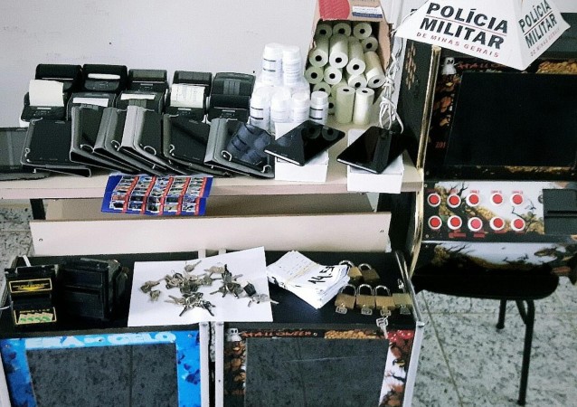 Os policiais monitoraram o veículo e descobriram que os suspeitos estavam na cidade para instalar uma rede de jogos de azar. Com eles, foram apreendidas três máquinas caça-níqueis, dez impressoras, nove tablets, cartelas e comprovantes de jogo do bicho, além de 30 bobinas para impressoras de apostas.
