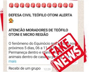 Por meio de nota, a Assessoria de Comunicação da Prefeitura também desmentiu o boato. “O Equinócio é um evento que consiste em dias e noites com a mesma duração e não o que está descrito no aviso. O Equinócio de 2019 também já ocorreu, em Março deste ano. A Defesa Civil de Teófilo Otoni, bem como de Minas não tem conhecimento dessa informação”.