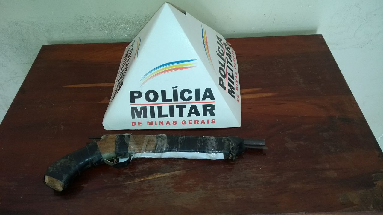 A PM deslocou até a residência do autor, porém o mesmo já havia evadido. A arma foi localizada e apreendida.