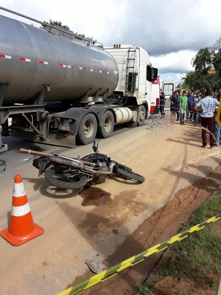 Vítima foi atropelada por uma carreta após cair da moto que pilotava; acidente ocorreu na tarde desta segunda-feira (9)