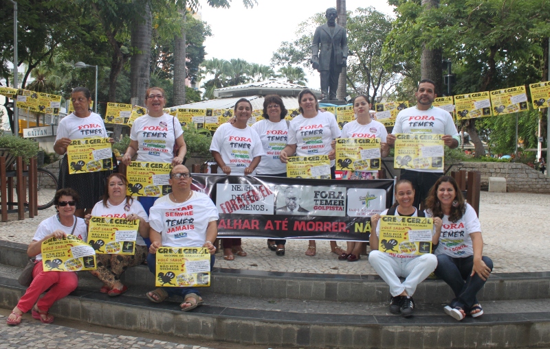TEÓFILO OTONI – No início desta semana um grupo de manifestantes realizou nova onda de protestos contra o presidente Michel Temer e a Reforma da Previdência proposta pelo atual governo. Representantes de diversas categorias fizeram um protesto na segunda e terça-feira, na Praça Tiradentes, Centro, como parte da mobilização nacional contra as reformas da Previdência e trabalhista, propostas pelo atual governo. Dezenas de pessoas ocuparam a praça, com cartazes e faixas. Bancários, professores, profissionais da área de saúde, representantes de movimentos sociais e levantes também participaram do ato conduzido pelo SINDUTE. De acordo com as centrais sindicais, a Educação é uma das áreas mais prejudicadas com as propostas da nova regra de previdência.