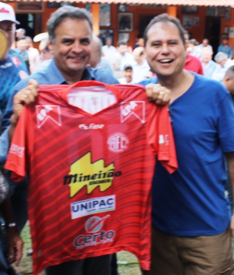 TEÓFILO OTONI – O empresário Marcelo Ramos declarou apoio, no evento de lançamento da candidatura de Aécio Neves em T. Otoni, ocorrida no dia 25 de agosto (último sábado), ao ex-governador e atual senador mineiro. Na oportunidade, Marcelo entregou uma camisa do América de Teófilo Otoni para o candidato.