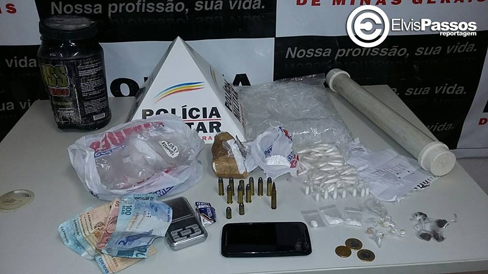 Com autorização dos familiares, foi realizada buscas no interior da residência do menor G.P.A., de 14 anos, porém nada foi encontrado. Porém, na casa do outro envolvido, P.H.C., de 15 anos, foi encontrado em um dos quartos da casa, pertencente ao tio do menor três papelotes de cocaína, um saco plástico contendo vários eppendorf (pinos) vazios e vários saquinhos usados para embalar entorpecentes, um tubo plástico em PVC que é usado para acondicionar drogas, contendo vários saquinhos de geladinho, a quantia em dinheiro de R$ 400 em dinheiro, um pedaço de folha de papel contendo anotações da contabilidade do tráfico de drogas e a inscrição do nº de celular (33) 87131681, um cartucho intacto de munição de calibre restrito 223, similar ao calibre 556. Em continuação às buscas, no quintal do imóvel, foi localizado um recipiente plástico com cinco saquinhos de geladinho, que continham, cada um, 15 pinos de cocaína, totalizando 75 pinos de cocaína, uma pedra de cocaína com aproximadamente 170 gramas e uma porção de cocaína em pó com aproximadamente 300 gramas. No interior de um fogão existente no imóvel foram localizados nove cartuchos 38 intactos, dois cartuchos calibre 380 intactos e uma balança de precisão. Os adolescentes foram detidos e conduzidos à delegacia, juntamente com o material apreendido durante a operação.