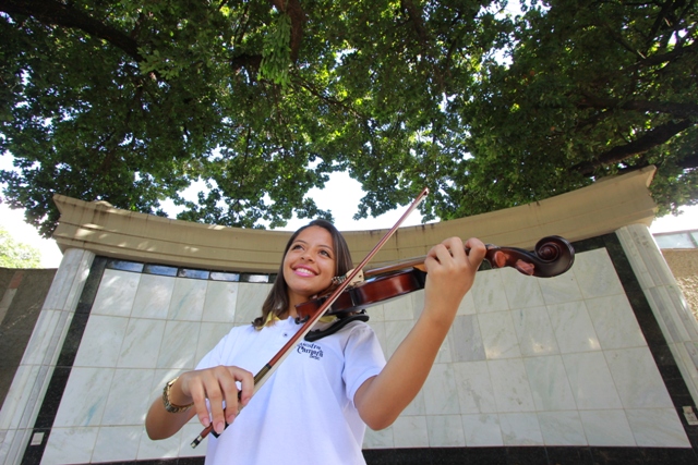 O projeto oferece o desenvolvimento musical tanto para jovens que nunca tiveram contato com a música quanto para aqueles que desejam aprimorar sua aptidão para essa arte, como é o caso de Melissa Soares, de 15 anos. O violino já fazia parte da sua vida, mas ingressar na Orquestra foi o divisor de águas. “A minha maior evolução foi melhorar a minha percepção auditiva. Eu já tocava, mas não tinha disciplina, não dedicava um tempo para os estudos. Mas agora, na Orquestra, isso faz parte do meu dia”, conta.