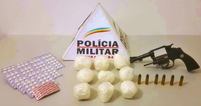 DIVISA ALEGRE – No último sábado (23), a Polícia Militar recebeu informações de que havia uma casa abandonada na cidade utilizada para armazenar drogas. Ao chegar no local, não havia nenhum morador. Porém, na casa a PM localizou os seguintes materiais ilícitos: 01 arma de fogo calibre 38, 06 munições calibre 38 intactas, 09 embalagens de droga similar à cocaína totalizando 600 gramas, 270 unidades de medicamento Nobésio Extra Forte, 01 motocicleta modelo Honda CG, sem placa e com chassi adulterado.