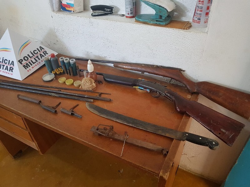 FRONTEIRA DOS VALES – A Polícia Militar deslocou até a Fazenda Boa Vista, após informações de que um homem estaria ameaçando de morte seu próprio irmão com uma espingarda. A vítima confirmou tal informação e, com o autor e em sua residência, foram apreendidas quatro espingardas, uma armadilha com dispositivo de arma de fogo, um facão, 10 cartuchos de diferentes calibres, um recipiente contendo espoletas, chumbo e pólvora e uma bucha utilizada para municiar espingarda. O autor foi preso e conduzido à delegacia.