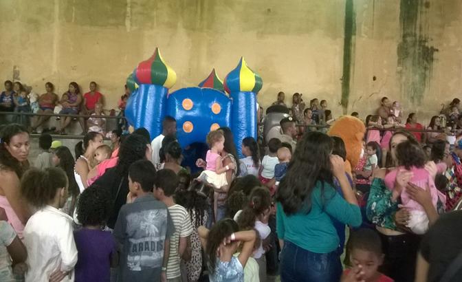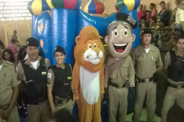 CARLOS CHAGAS – Na última semana, a Polícia Militar participou da culminância do projeto Festa das Crianças/2016, promovido pela PM e a Pastoral das Crianças de Carlos Chagas. O evento foi realizado na quadra da Escola Municipal Professora Arminda Lopes Ribeiro, com a participação de mais de mil pessoas, envolvendo crianças da pastoral e seus responsáveis. Durante a festa, foi oferecido café da manhã, almoço, presentes, brincadeiras com pula-pula, piscina de bolinhas, palhaços e a brilhante presença dos personagens Leão DARE e PM Legal.