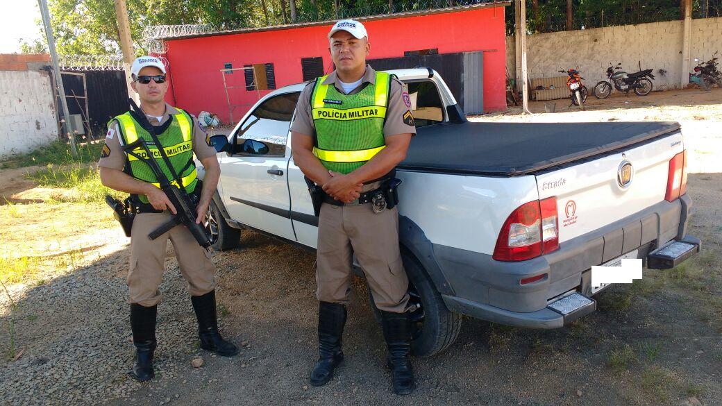 Após pesquisa da numeração da gravação do motor do veículo abordado, foi verificado que se trata de um veículo Fiat/Strada working, cor branca, placa de Sete Lagoas/MG, constando ainda, queixa de furto/roubo.