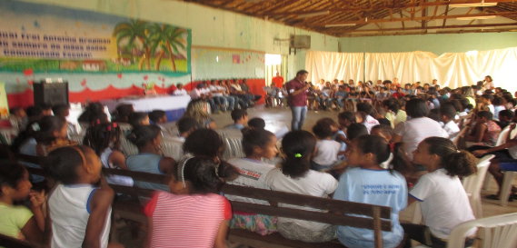 Durante as ações educativas nas escolas alunos e professores são orientados como eliminar os criadouros do mosquito da dengue.