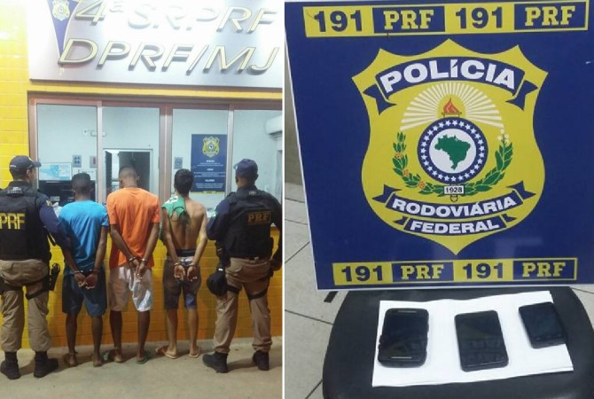 TEÓFILO OTONI – Três jovens, de 18 e 21 anos, foram presos suspeitos de assaltarem caminhoneiros na BR-116, em Teófilo Otoni. Agentes da Polícia Rodoviária Federal (PRF) faziam um patrulhamento, na madrugada desta quarta-feira (7), quando avistaram os suspeitos caminhando às margens da rodovia, na altura do quilômetro 245. Com eles foram encontrados três celulares roubados. De acordo com a PRF, os suspeitos D.S.M, de 18 anos, P.H.G.P, de 18, e W.G.S.C, de 21, agiam na região há algum tempo. Ainda segundo a polícia, eles colocavam as namoradas para pedirem carona na rodovia e surpreendiam os motoristas. As ocorrências foram registradas nos dias 03 e 06 deste mês, no perímetro urbano do distrito de Mucuri, onde os caminhoneiros informaram que três homens armados, mediante violência, roubaram celulares e dinheiro. Os suspeitos, juntamente com os celulares, foram encaminhados à delegacia. Na oportunidade, a ação da PRF contou com o apoio da guarnição da Polícia Militar do Distrito de Mucuri.