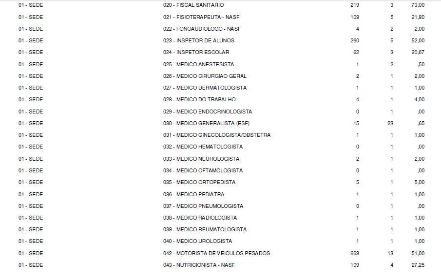 São oferecidas 659 vagas para todos os níveis de escolarização. A remuneração pode variar de R$ 900 a R$ 1.676,55. Quatro áreas médicas, com salário inicial de R$ 1.158,99, não registrou inscritos