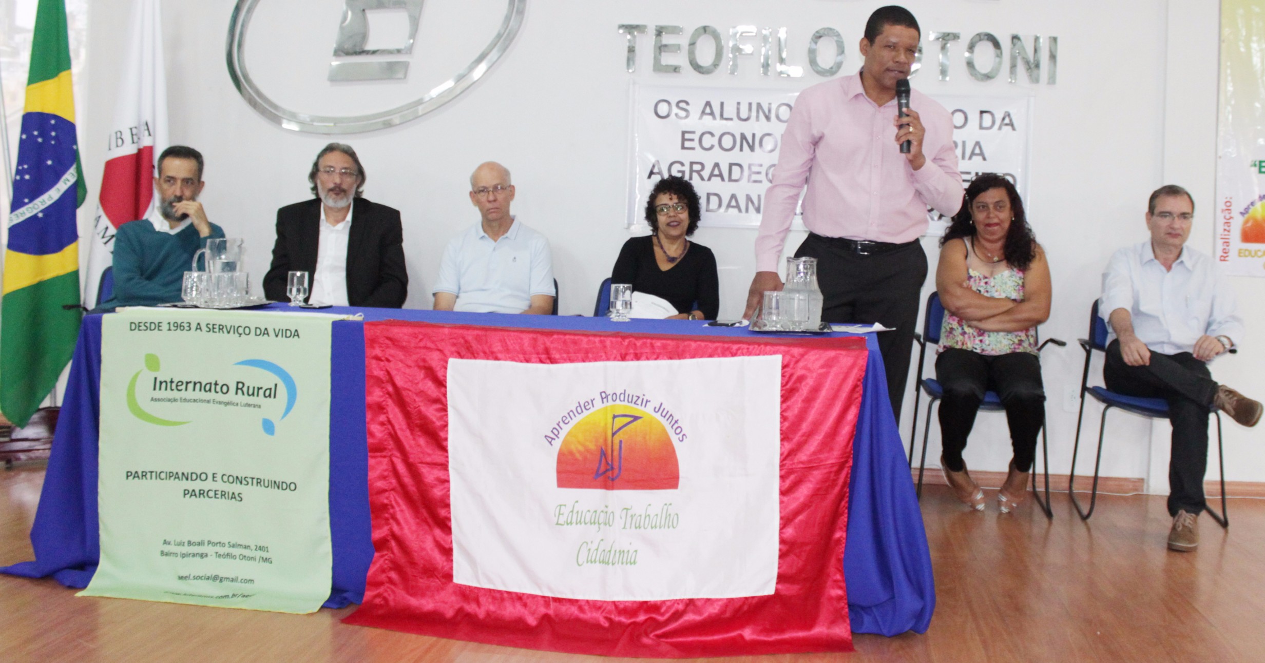 O evento reuniu dirigentes de organizações de economia solidária de várias cidades. Representando a Prefeitura de Teófilo Otoni participaram o Secretário Municipal de Governo, Pio de Castro; o Secretário Municipal de Economia Solidária,Trabalho, Emprego e Renda, Jonas Boa Ventura; o Secretário Municipal de Meio Ambiente e Desenvolvimento e Sustentável, Adilson Baía; o Secretário Municipal de Saúde, Tarcirlei de Brito; e o Secretário Municipal de Educação, Ciência e Tecnologia, Marcos Godinho. Também participaram da solenidade a representante da Associação APJ, Joana Alves Louback; a representante dos empreendimentos econômicos solidários do Vale do Mucuri, Rizia Silvia Cardoso e o representante da Associação Educacional Evangélica Luterana, Werner Kriebel.