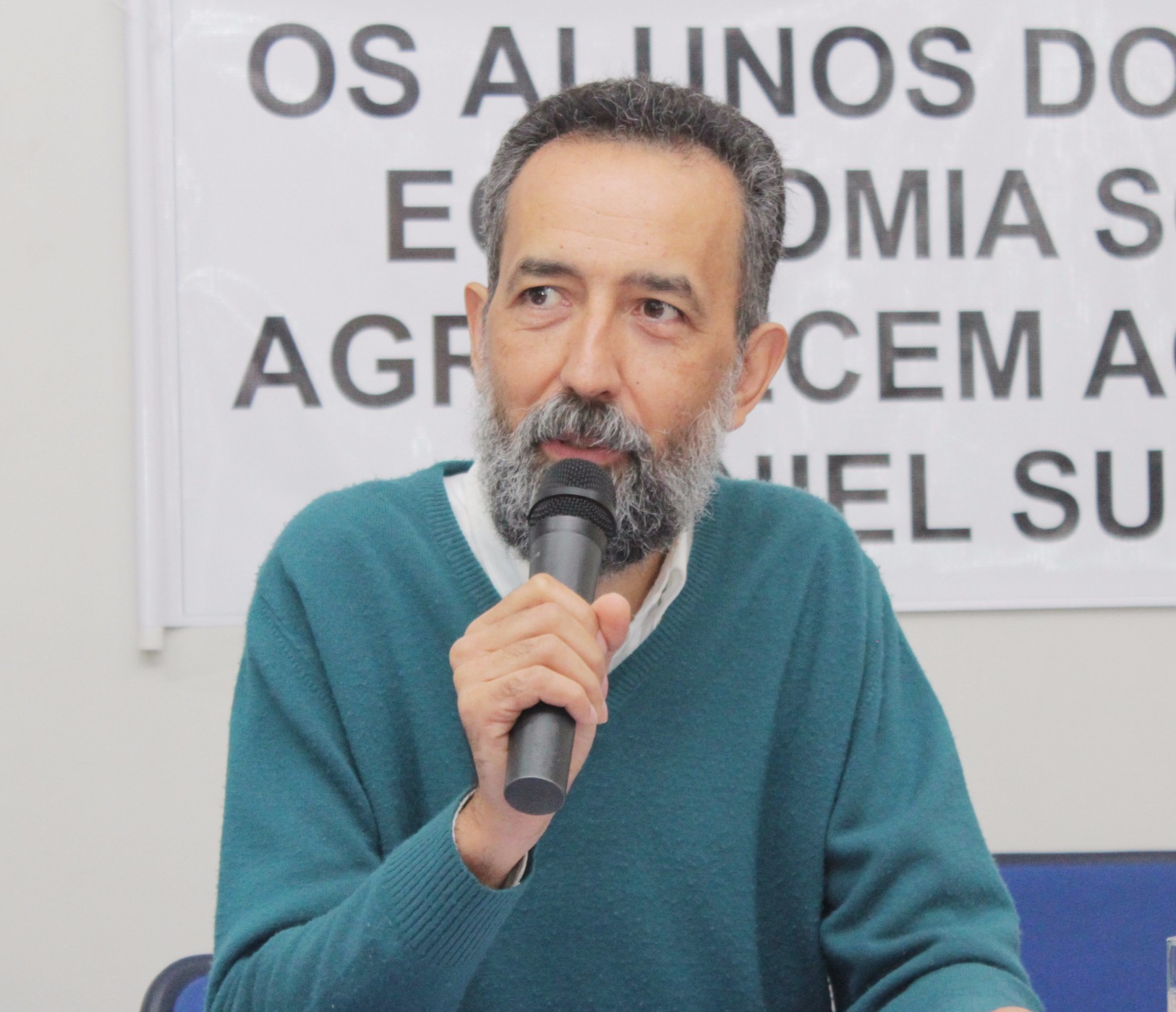 O palestrante Euclides André Mance explicou os sistemas econômicos para chegar à economia solidária. “Para entender como funciona esse circuito nós vamos analisar como funciona os circuitos econômicos do capital, da economia capitalista, o processo de produção da riqueza, dos valores de uso, da circulação para passar no comércio e no sistema comercial. Ao invés da riqueza que é produzida pelo trabalho a ser acumulada por aqueles que têm o controle dos meios produtivos, o que se faz é organizar empresas auto gestionadas que são subordinadas aos trabalhadores e às comunidades que vão produzir aquilo que as pessoas precisam para o seu consumo mensal. E ao produzir o que as pessoas precisam vão poder atender a essa demanda de consumo da comunidade, e ao mesmo tempo gerar riqueza que vai ser reinvestida de forma solidária, reorganizando as cadeias produtivas. Isso assegura as distribuições das riquezas, a posse de trabalho, a distribuição de renda, o bem viver da comunidade, desconcentrando a riqueza e produzindo o desenvolvimento sustentável”, destacou Mance