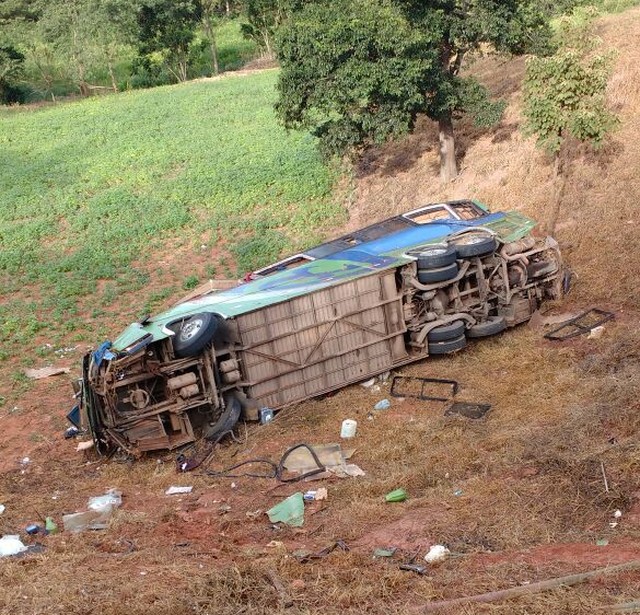 Segundo a Polícia Militar, ônibus transportava trabalhadores rurais para o Espírito Santo, quando saiu da pista e caiu em um barranco